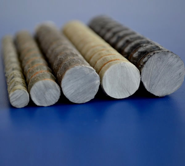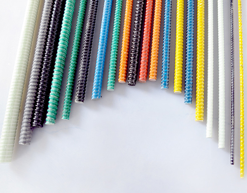 土木工程用玻璃纖維增強(qiáng)筋(Glass Fiber Reinforced Polymer Bars)是由含堿量小于1%的無堿玻璃纖維(E-Glass)無捻粗紗或者高強(qiáng)玻璃纖維(S)無捻粗紗和樹脂基體(環(huán)氧樹脂、乙烯基樹脂)、固化劑等材料,通過成型固化工藝復(fù)合而成的筋材,簡稱GFRP筋。