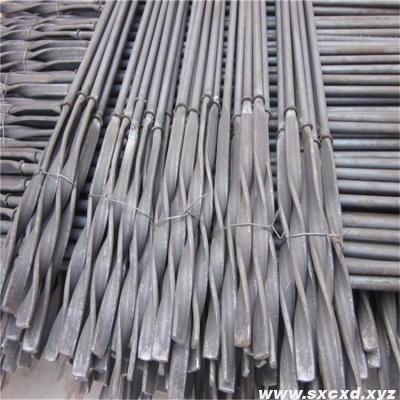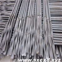 麻花錨桿分為兩種,一種是螺紋鋼麻花錨桿,就是在錨桿鋼的頭部擰一部分麻花,比普通麻花錨桿預(yù)緊力大,另一種是利用各種規(guī)格的圓鋼做成的,在圓鋼頭部做一段麻花。